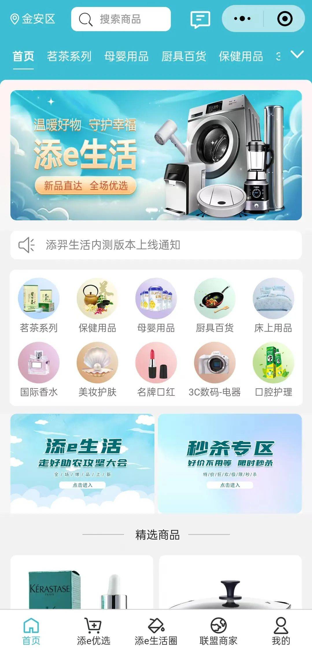“添e生活”是一款线上商城加线下实体店的互联网4.0销售平台。围绕百姓衣食住行所需,带动实体经济,以线上线下为一体的电商消费平台。通过创新的商业机制和专业的AI技术支持,将打破传统商业模型,开创百业联盟、线上线下联动的生态经济新时代。